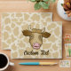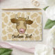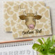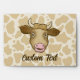 Surprised Cow's head illustration. Seamless cow pattern background. Custom text.