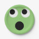 These cute paper plates make the perfect party supplies for emoji themed birthday parties. Features a hand-drawn style illustration of a light green surprised or shocked face emoji or emoticon with big google eyes and a mouth in a shocked "oh" of surprise.