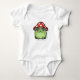 This kawaii frog design hides bashfully under a big red toadstool with wide eyes and blushing cheeks, capturing pure cuteness overload.