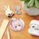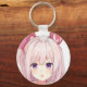 Surprised pink hair anime girl purple eyes bunny key ring
