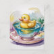 AI generated surreal adorable fantasy art of yellow duckling swimming in a pond inside of a teacup