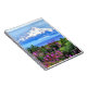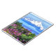 The artist's imaginative brushwork and vivid colours transport viewers to an enchanting version of the Alaskan wilderness featuring ice mountain with forest on blue sky background.