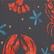Surreal Animal Design With Lobster Pattern In block print style. Vintage animals wallpaper with red lobsters.