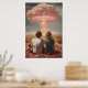 Step into an alternate reality with this captivating and surreal digital wall art. Featuring a retro-style couple and their dog casually enjoying a picnic in the desert while witnessing a massive nuclear explosion on the horizon, this artwork blends dark humour with a sense of calm amidst chaos. The juxtaposition of a serene picnic scene against a dystopian backdrop creates a thought-provoking piece perfect for lovers of surreal, avant-garde, and post-apocalyptic art.