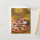 An surreal sci-fi pizza with an adorable sleeping kitty floating on a rainbow with a gold sphere planet shape in the background AI generated art