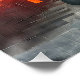 Surreal City Staircase Under Crimson Moon Art Poster