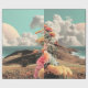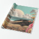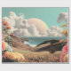Surreal Coastal Landscape With Flowers And Clouds Wrapping Paper