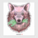 Bold wolf illustration with surreal flair—pink and red fur, piercing mismatched eyes, and a macabre twist as it clenches a zombie hand. A vivid, symbolic design perfect for fans of dark fantasy art and statement merch