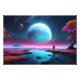 Dive into a Surreal Cosmic Landscape where a lone astronaut gazes toward a mesmerizing planetary horizon, bathed in luminous hues of turquoise, pink, and deep celestial blue. This enchanting fantasy scene captures serene reflections, mystical trees, and dreamy skies, transporting you into an imaginative world of exploration and wonder. Perfect for cosmic art enthusiasts, this digital artwork evokes infinite curiosity, turning your decor into an adventure across the universe.