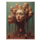 "This surreal digital painting features a mesmerising arrangement of faces, connected by flowing, braid-like structures. The golden conical crowns add a touch of enigmatic elegance to the composition. With its dreamy aesthetic and intricate details, this poster is sure to spark conversation and add a unique artistic flair to your home or office."