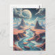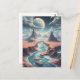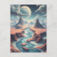 A beautiful surreal landscape with a large full moon rising over a pretty blue river. Ai art depicting a beautiful otherworldly landscape with a dreamlike quality. Keep in touch with this beautiful ethereal fantasy world postcard.