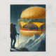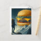 Surreal Hiker Giant Cheeseburger over Mountains Postcard