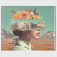 A surreal and thought-provoking portrait where inner worlds take visible form. A calm profile is layered with flowers, butterflies, and a monumental architectural structure stretching across the eyes, set against vast mountains and an open sky. The contrast between organic elements and rigid geometry evokes themes of memory, control, imagination, and hidden perception. Soft retro colours and clean composition give this artwork a timeless, cinematic quality—inviting the viewer to reflect on how thoughts, systems, and dreams quietly shape what we see and who we become.