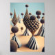 Desert scenery in 3D, in the style of organic forms blending with geometric shapes, spiky mounds, digital art wonders, ethereal trees, punctured canvases.