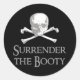 Great gifts for Pirates on t-shirts, coffee mugs, tote bags, buttons, neck ties, postage, note cards and more great pirate captain gifts. Design features a light grey skull and crossbones and caption Surrender the Booty.