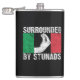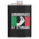 Well made flask, a little better than I had expected. Flask came in clear plastic box which gave it a nice presentation when I took it out of the zazzle packaging. Image is not printed on flask but on sticker. Don't know how this will hold up I haven't used it yet. This would make a Great gift! I plan to purchase more for friends! Cheers. I thought a little brighter than computer. Very crisp, writing wasn't