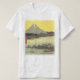 Mount Fuji with a pine grove on a promontory in the Suruga Bay surrounded by sailboats. 1858