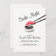Sushi Night Invitations. This modern design can be used for birthdays, proms, bridal showers, housewarming parties, or any other party you would like. The Invitation is created with a white background and a piece of sushi dipping into soy sauce, on the back there is a plate of sushi with different pieces of sushi on the plate. Additional party supplies are available at Metro-Events Zazzle shop and Metro-Event.com.