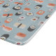 Delicious Japanese sushi food art pattern on a mid blue background to make your kitchen fancier!