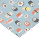 A pattern of cute Japanese sushi food art on a robin's egg blue background for gourmets and foodies.
