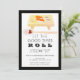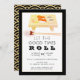 This stylish and modern " Let the good times roll" birthday party invitation features watercolored sushi on wood board with chopsticks on white background framed by a black border. The reverse side features wave patterns in black and faux gold. Change the background colour on both front and the back and personalise it for your needs.