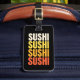 Simple colourful text design with "Sushi, Sushi, Sushi, Sushi" text in beige, yellow, orange and red colours