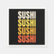 Simple colourful text design with "Sushi, Sushi, Sushi, Sushi" text in beige, yellow, orange and red colours