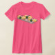 Three illustrated sushi bites with pink flowers decorating the tops.