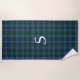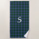 Stylish beach towel done in the classic blue and green Scottish clan Sutherland tartan plaid pattern. Personalise the large white one letter monogram, in the middle, to suit your needs.