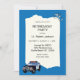 Blue and White retirement invitation for a police officer. Design has a SUV police car and hand cuffs.Use our easy template to customise with your party details.