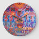 Huichol Peyote Ritual, Wall clock, Huichol Wall Clock, Tribal Wall Clock, Wicca Wall Clock, Peyote Ritual Wall Clock, Virginia Vivier, Vagabond Folk Art, Tribal Folk Art, Huichol folk art, Mexican Design Wall Clock