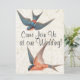 Gorgeous faux Handmade Paper with vintage botanical fine art of exotic Swallow Birds in flight grace these Invitations to your Wedding should you so choose. Images are public domain due to expired copyright.