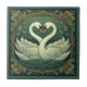 Swan Couple Art Nouveau Forest Green Wall Accent Tile