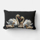 Swan Family on Black Lake Artwork Lumbar Cushion