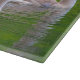 This glass cutting board features several young swans floating in the Connecticut River