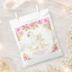 This cute and whimsical baby shower thank you favour bag features an elegant swan and pink roses floral arrangements with faux gold glitter confetti. The text combines handwritten script and sans serif fonts for a stylish and modern look. This is perfect for a swan themed baby shower.