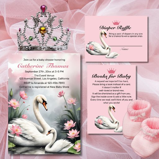 Introducing our enchanting Watercolor Swan Lake Pink Lotus Floral Baby Shower Design, perfect for your swan themed baby celebration. This exquisite design features a royal swan baby bash motif, blending the grace and elegance of swans with the delicate beauty of pink lotus flowers. Ideal for a swan and flowers baby shower, this design captures the essence of a pink swan princess girl baby, creating an atmosphere that is both fairytale-like and sophisticated.