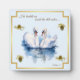 Peaceful swans on a blue background.  Square tabletop plaque.  He leadeth me beside the still waters...  23rd psalm.  Gold like frame and pinecones.  Thanks for looking.
