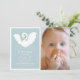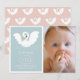 This cute and modern girl's 1st/first birthday photo invitation features a swan with a crown on a light blue background framed by a white border. The reverse side features a light pink background with swan patterns. Personalise it for your needs. You can find matching products at my store.
