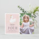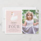 This elegant and modern girl's birthday photo invitation features a swan with a faux gold crown on a dusty pink background framde by a white border with faux gold splatters. The reverse side features a white background with blush pink stripes. Personalise it for your needs. You can find matching products at my store.