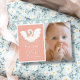 This cute and modern girl's 1st/first birthday photo invitation features a swan with a crown on a pink background framed by a white border. The reverse side features a light blue background with swan patterns. Personalise it for your needs. You can find matching products at my store.