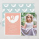 This cute and modern girl's birthday photo invitation features a swan with a crown on a pink background framed by a white border. The reverse side features a light blue background with swan patterns. Personalise it for your needs. You can find matching products at my store.