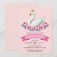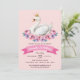 Swan Princess Pink Watercolor Girl 1st Birthday Invitation