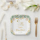 Swan Sage Green and Gold Roses Baby Shower Paper Plate