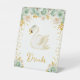Swan Sage Green and Gold Roses Baby Shower Pedestal Sign