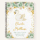 This cute and whimsical notebook features an elegant swan and sage green roses floral arrangements with faux gold glitter confetti. The text combines handwritten script and sans serif fonts for a stylish and modern look. It can be personalised with your baby's birth stats, such as name, size, date and time of birth, or if you would like to give it as a shower gift you are able to edit and remove text.