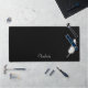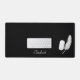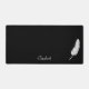 Swan White Feather & Script Calligraphy on Black Desk Mat