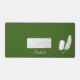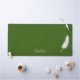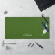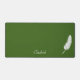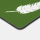Swan White Feather & Script Calligraphy on Green Desk Mat