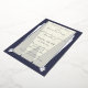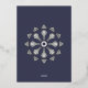 Bring touch of roaring 20s elegance to your event with this wedding invitation featuring a foil printed, Art Deco frame surrounding sample invitation text highlighted by spotlights, and sitting on a cool, steel blue background. Customise the sample details with your own swanky event's information to create a custom card for your classy celebration. A silver, Art Deco inspired wheel on a matching blue background finishes things off on the back to create a final, posh note . This invitation will match with any other Swanky Art Deco in Blue product so that you can easily make your event as coordinated as you desire.