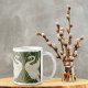 A coffee mug with the wallpaper design by Walter Crane (1845-1910), Swans, Rush and Iris (1875). An English artist from the Arts and Crafts movement. He produced many decorative paintings, plus illustrations for children's books.